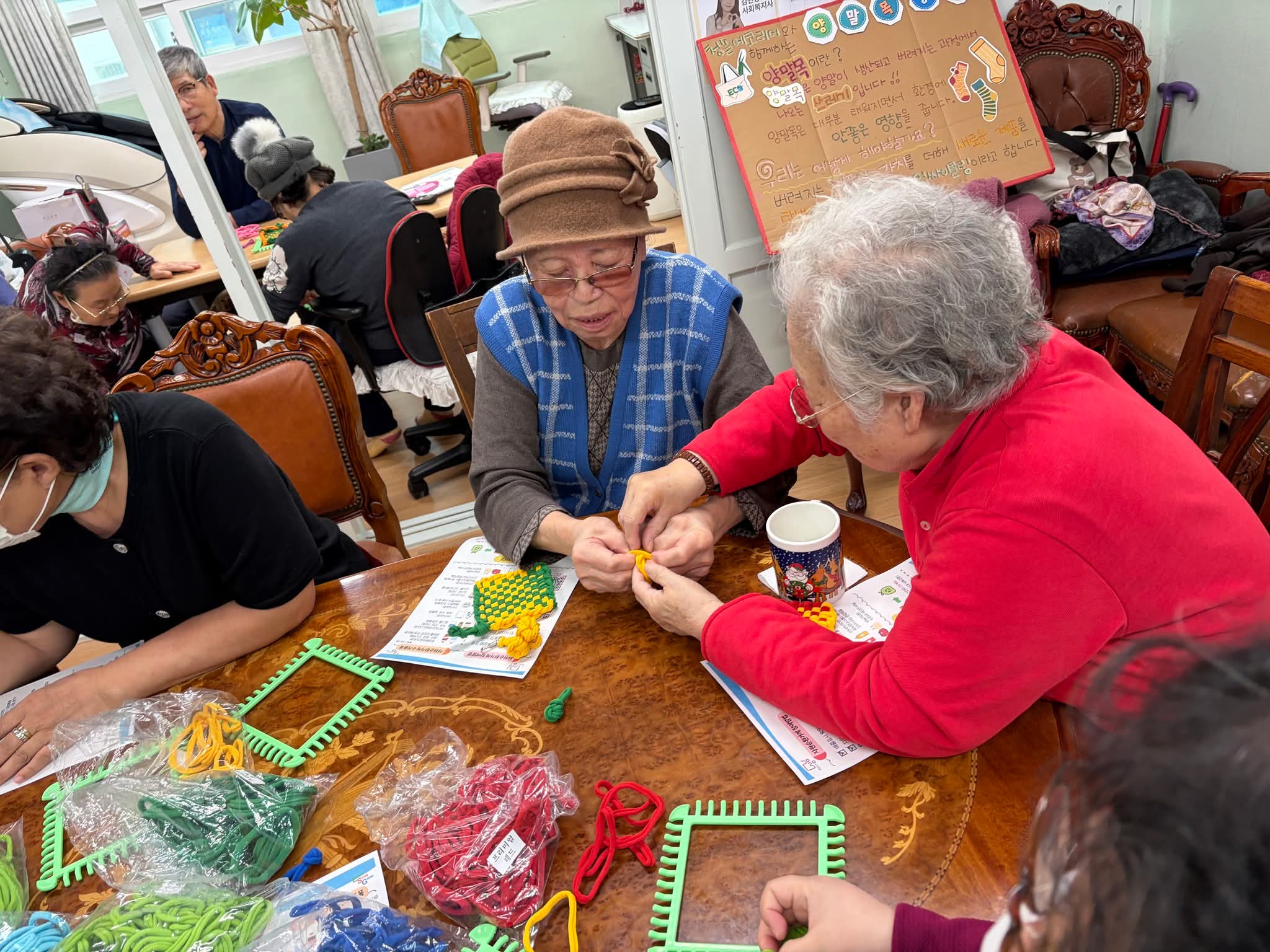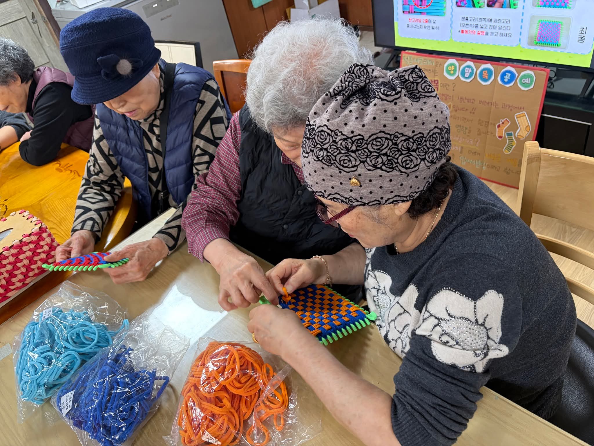 °æ·Î´ç ȸ¿øºÐµéÀÌ Á÷Á¶Æ²1°³¿Í µÎ°¡Áö »ö»óÀÇ ¾ç¸»¸ñÀ» °¢°¢ 10°³¸¦ ÁغñÇÏ¿© Ȱµ¿°¡ÀÇ º¸Á¶·Î ƼÄÚ½ºÅÍ ¸¸µé±â
