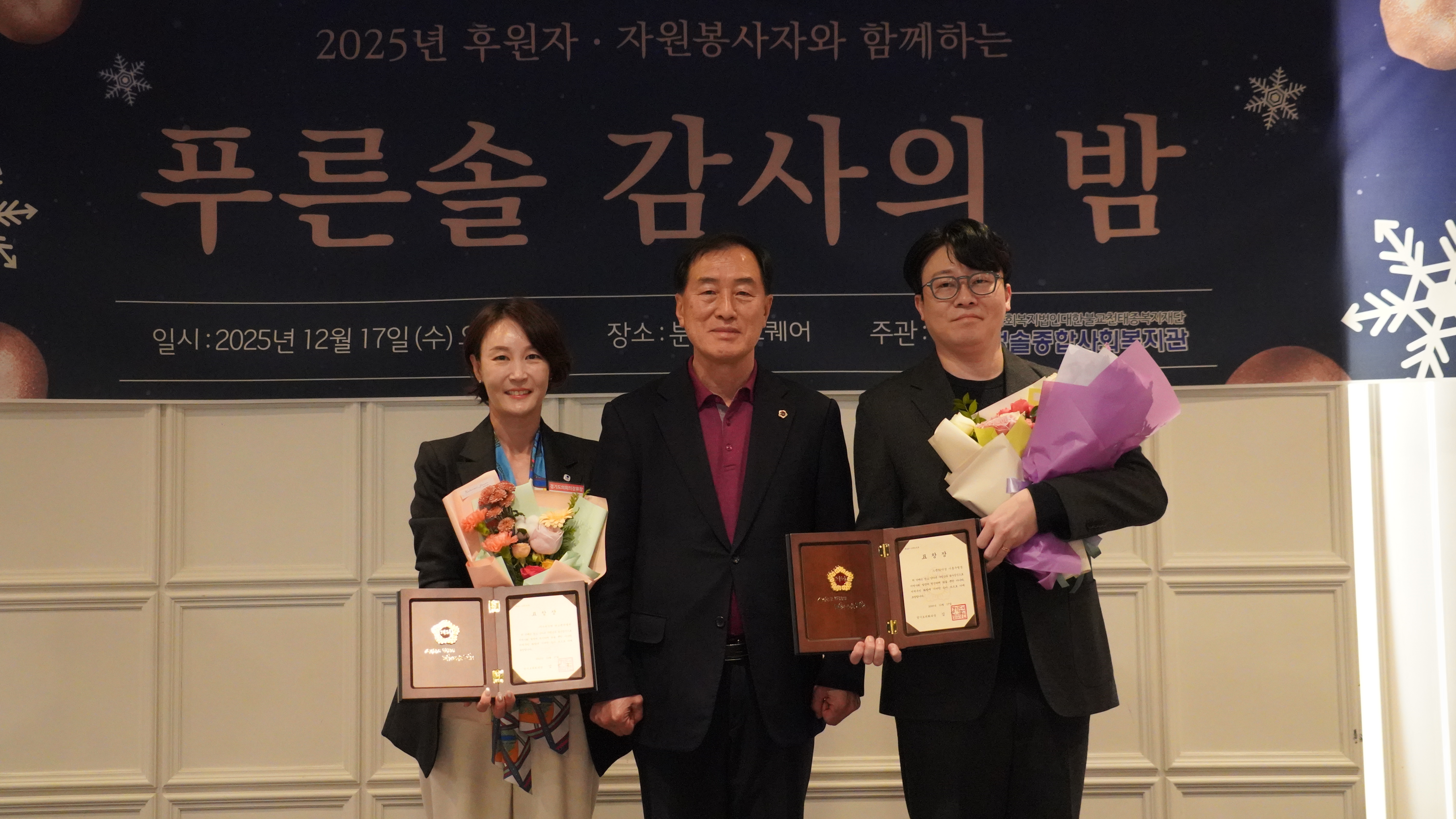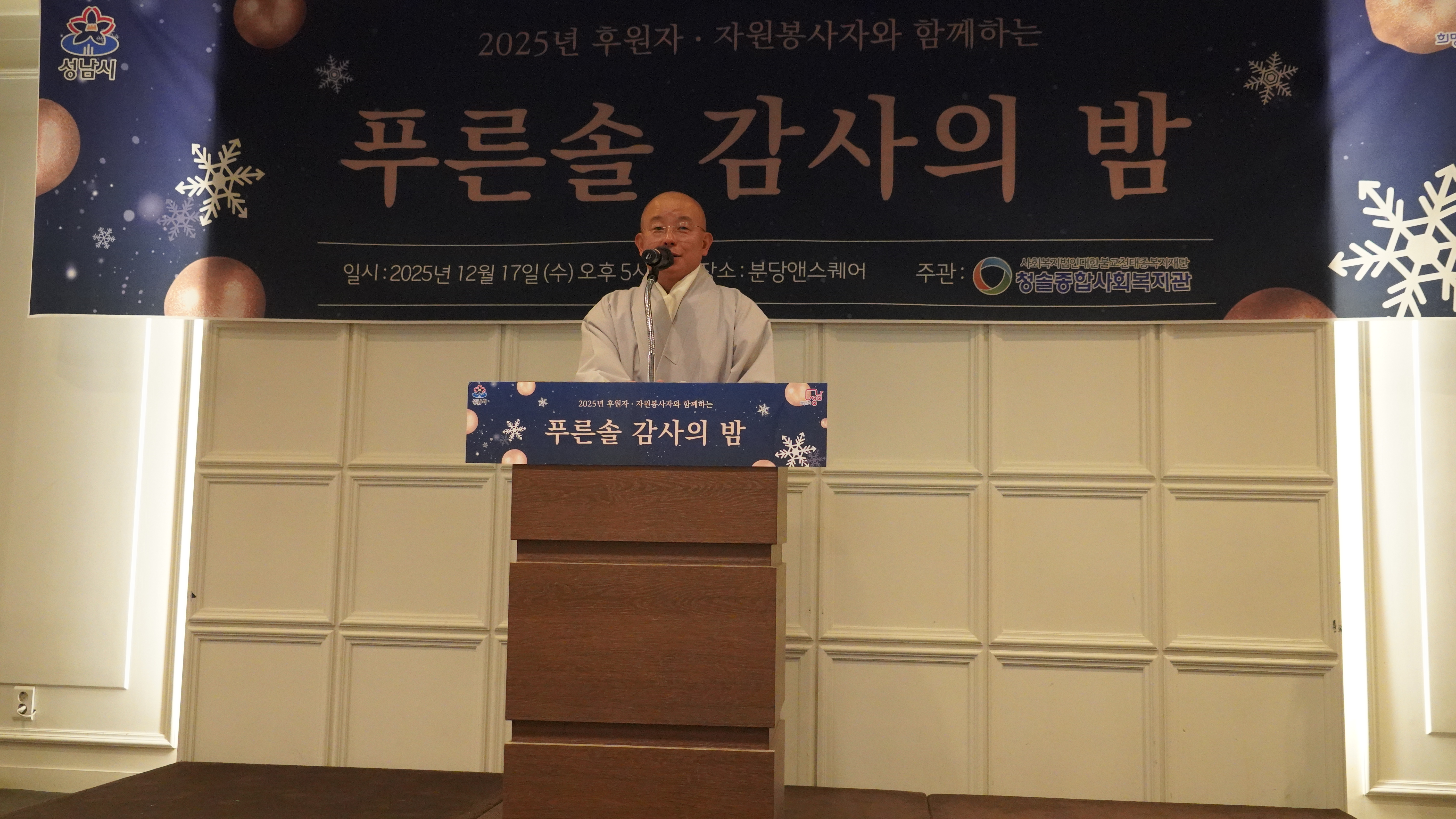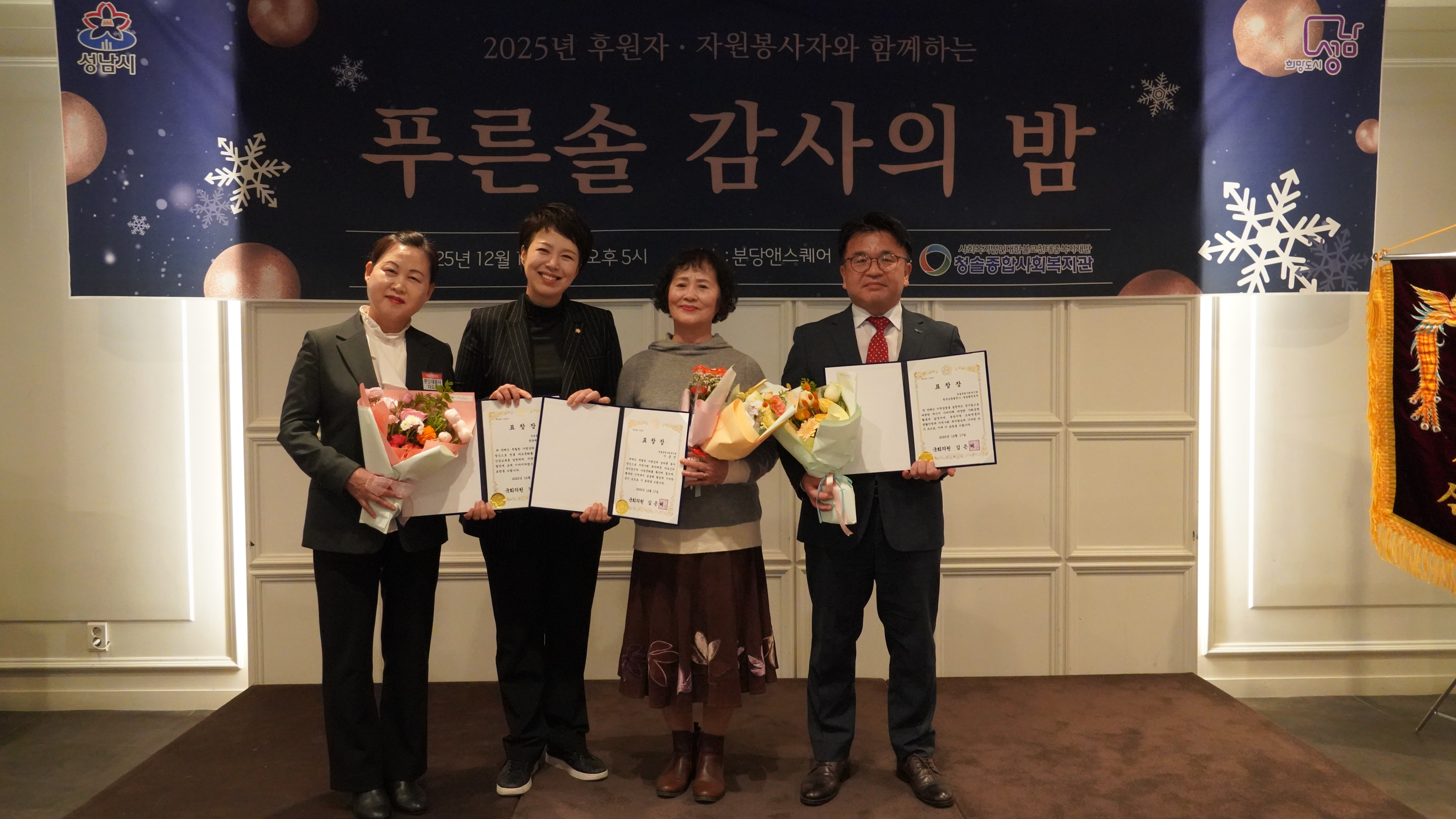 Àº Áö³ 12¿ù 17ÀÏ(¼ö) ¿ÀÈÄ 5½Ã, ºÐ´ç¾Ø½ºÄù¾î¿¡¼ 2025³â ÇÑ ÇØ µ¿¾È º¹Áö°ü°ú ÇÔ²² ³ª´®À» ½ÇõÇÑ ÈÄ¿øÀÚ ¹× ÀÚ¿øºÀ»çÀÚ¸¦ ÃÊÃ»ÇØ ¡®Çª¸¥¼Ö °¨»çÀÇ ¹ã¡¯ Çà»ç¸¦ ¼ºÈ²¸®¿¡ °³ÃÖÇß´Ù.