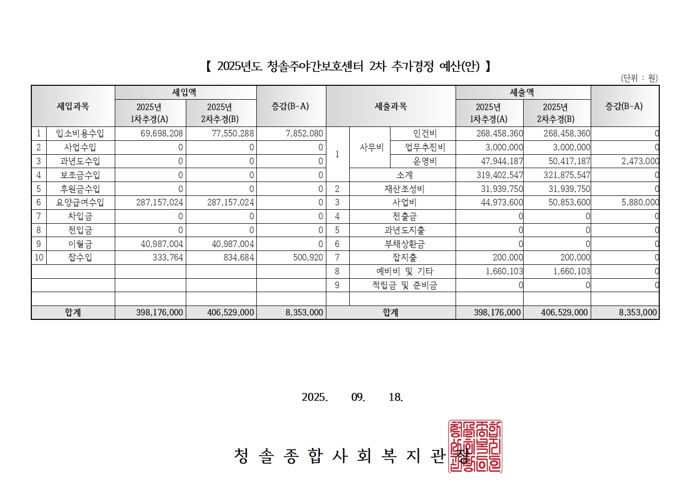 2025³â º¹Áö°ü ¹× ºÎ¼³¼¾ÅÍ 2Â÷ Ãß°¡°æÁ¤ ¿¹»ê(¾È) °ø°í[û¼Ö°ø°í Á¦25-030È£]