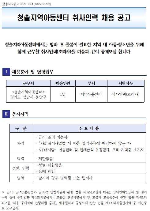 Ãë»çÀηÂ(Á¶¸®»ç) ä¿ë °ø°í[û¼ÖÁöÅͰø°í Á¦25-05È£]